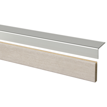Voor een fraaie overgang van jouw trap naar de verdiepingsvloer gebruik je de afwerklijst met geïntegreerd overgangsprofiel. De afwerklijst is verkrijgbaar in hetzelfde decor als de traptreden. In de bovenzijde van de afwerklijst is een uitsparing gefreesd waar het bijgeleverde aluminium profiel kan worden bevestigd. De afwerklijst wordt gemonteerd tegen de bovenste trede/verdiepingsvloer,het aluminium profiel wordt bevestigd op de bestaande verdiepingsvloer. Daarmee maak je de metamorfose van de trap compleet af tot het laatste detail. De basis van de afwerklijst is HDF met CPL laminaat aan de voorzijde en is decor gelijk met het decor van de traptrede. Het hout is PEFC gecertificeerd en daarmee afkomstig uit duurzaam beheerde bossen. De lijst is ± 1 cm dik, ± 5 cm hoog en 130 cm breed. Het onderhoud van de afwerklijst is praktisch en eenvoudig: gelijk aan dat van (traptrede)laminaat. De afwerklijst mag vochtig gereinigd worden.