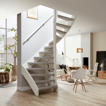 Met deze overzettreden hoef je de oude trap niet eerst volledig 'kaal' te maken voor je kunt beginnen met een trap te bekleden. Deze overzettreden passen prima op beschadigde of scheve treden. Dat scheelt een hoop voorbereidingstijd. Deze overzettrede is geschikt voor de meeste rechte stukken van de trap. Kies je stijl en na montage is de klus geklaard. Met deze overzettreden in de kleur lichtgrijs beton geef je de huidige trap een stoere betonlook. Het meten en op maat zagen van de trapbekleding doe je eenvoudig met de trapspin, een handig meethulpmiddel van CanDo. Je mag de traptreden licht vochtig reinigen; vergelijk het met het gemak van een laminaatvloer. Zo wordt het onderhouden van je trap een fluitje van een cent.