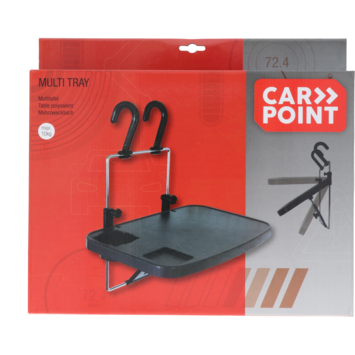 Zeer praktisch en multifunctioneel inklapbare Carpoint autotafeltje Multi Tray. De Multi Tray kan op verschillende plaatsen in de auto gebruikt worden. Past aan de rug van een voorstoel, de voorkant van de bijrijdersstoel of zelfs aan het stuur als u niet rijdt. Eenvoudig en snel te plaatsen en inklapbaar als u de tafel niet gebruikt en snel te verwijderen van het stuur als u gaat rijden. De tafel is in hoogte verstelbaar en altijd horizontaal af te stellen. Door de slimme haakbevestiging past de Multi Tray op ieder stuur en autostoel. In de tafel zit een uitsparing voor het plaatsen van een blikje drinken. Afmeting tafel 35x23cm, maximaal belastbaar tot 10KG.