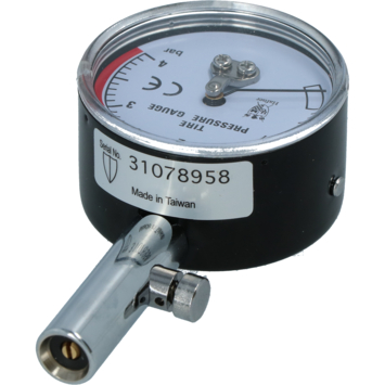 bandenspanningsmeter. De bandenspanningsmeter heeft een meetbereik van 0-4 BAR.