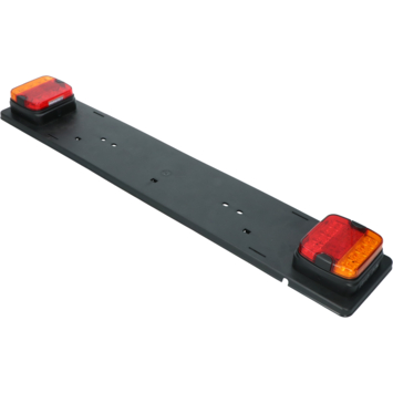 Draadloze Carpoint Bluetooth LED Verlichtingsbalk met een afmeting van 78x14cm voor gebruik op een aanhanger, trailer of fietsendrager. De 7-polige Bluetooth zender wordt in de trekhaak stekkeraansluiting gestoken en de LED achterlichten aanzetten en de verlichting is klaar voor gebruik. De Bluetooth zender gebruikt de spanning van het voertuig en werkt alleen als de verlichting aan staat! De achterlichten hebben 4 functies; richtingaanwijzer, achterlicht, remlicht, en kentekenplaat verlichting. De verlichting is oplaadbaar met de meegeleverde USB kabel. Makkelijk op metalen oppervlakten te bevestigen met de magneetbevestiging. Specificaties: * 4 functies: richtingaanwijzer, achterlicht, remlicht, en kentekenplaat verlichting * 7-polige Bluetooth-zender * Spanning: 12Volt * Bluetooth-module versie: 5.0 * Bluetooth-frequentie: 2,4GHz * Oplaadtijd batterij: 2 uur * Batterijcapaciteit: 4.000mAh * Maximale gebruiksduur licht: 8 uur * Bluetooth-bereik: tot 25 meter * Afmetingen lichtbalk 78 x 14 centimeter