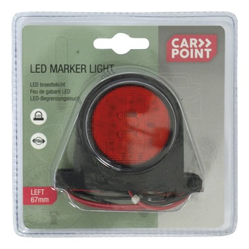 Rood en wit rond breedtelicht geschikt voor de linkerzijde, met een diameter van 45mm. Massief rubberen voet met een afmeting van 67x84mm. Vier heldere COB LED’s per kleur verlichting. Schroefbevestiging met een hartafstand 75mm. 4 aansluitsnoeren (2 x massa en 2 x voeding) met een lengte van 20cm. Voorzien van E-keurmerk.
