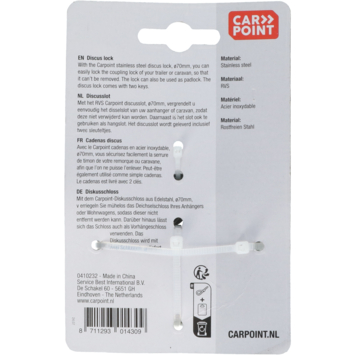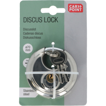 Het roestvrijstalen Carpoint discusslot kan gebruikt worden als hangslot in