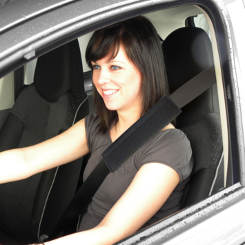 of knellen van de autogordels in de nek en schouder. De zachte stoffen