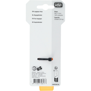 open gaat. De Carpoint spanband heeft een breedte van 25 mm en een lengte van 5