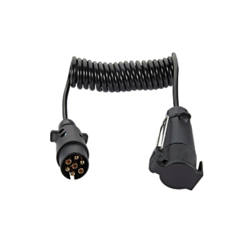 Carpoint 7 aderige trailer spiraal verlengkabel met een kabeldoorsnede van 0,5mm². Deze Carpoint spiraalkabel is ideaal voor een aanhangwagen, trailer of caravan. Door de spiraalvorm is de trailer verlengkabel makkelijk in gebruik. De krulling zorgt ervoor dat de kabel rekbaar en flexibel is en de kabel niet over de grond sleept. De spiraalkabel heeft een minimale lengte van 26 centimeter tot maximaal 3 meter. Deze verlengkabel heeft een 7 polige kunststof male stekker en een 7 polige kunststof female contrastekker of stekkerdoos.