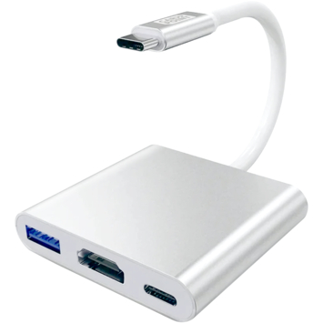 HDMI en een USB-A en Type C aansluiting. De USB-C adapter transformeert de