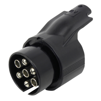 een 13-polige stekker kan aan op de 7-polige stekkerdoos aan de auto of camper.