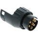 een 13-polige stekker kan aan op de 7-polige stekkerdoos aan de auto of camper.