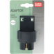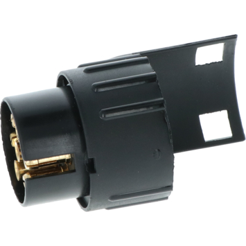 De verloopstekker heeft een stevige kunststofbehuizing en bajonet sluiting.