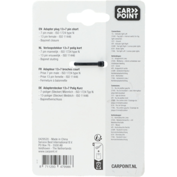 Met de korte Carpoint adaptor sluit u de fietsdrager, aanhanger, trailer met