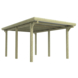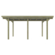 Het dak bestaat uit trapeziumvormige panelen van ondoorzichtig, grijs PVC. Deze dakbedekking beschermt tegen neerslag en zon. De carport wordt geleverd met een opbouwbeschrijving en montagemateriaal voor de houten onderdelen en dakpanelen. Voetsteunen voor de houten staanders zijn niet inbegrepen.
