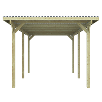 De dakbedekking is gemaakt van zes stevige golfplaten van grijs PVC, die zorgen voor een robuuste bescherming tegen weersinvloeden. De opbouwbeschrijving zit bij de verpakking, zodat de montage eenvoudig is. Het benodigde montagemateriaal voor de houten onderdelen en de bevestiging van de dakplaten is inbegrepen. Let wel, de voetsteunen voor de houten staanders zijn niet inbegrepen, maar de rest is klaar voor een snelle en probleemloze installatie. Stal je auto veilig en droog met de Carport Eagle!