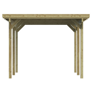De totale hoogte van deze Caport is 239 cm. De inrijbreedte voor de auto tussen de palen is 245cm. De inrijhoogte aan deze zijde bedraagt 223 cm De hoogte van de opening aan de lange zijkanten is 213 cm. De maten zijn gebaseerd op het geleverde hout. De werkelijk inrijhoogte kan anders worden door de gekozen fundament wijze. Middels het gekozen fundament kun u de Carport een paar cm verhogen indien gewenst. Houdt hier rekening mee voor de eindsituatie.