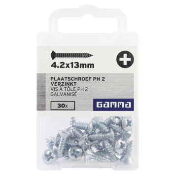 Met Gamma zelftappers bevestigd u eenvoudig plaatmaterialen en plastic panelen op hout. Een zelftapper snijdt zijn eigen schroefdraad als deze wordt ingeschroefd. Deze 4,2X13 Verzinkt zelftapper heeft een lenskop voor een eenvoudige bevestiging. De vorm van deze kop laat een mooie afwerking zien. Zelftappers worden ook carrosserie schroef en carrosserie plaatschroef genoemt.