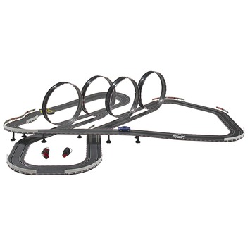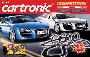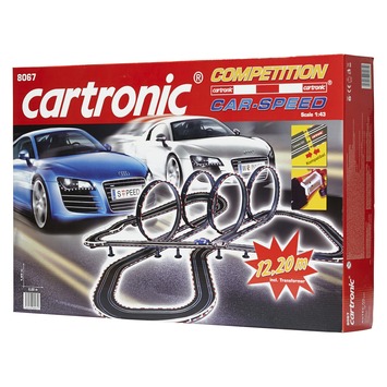 Catronic racebaan inclusief een blauwe en zilveren Audi's R8, 1 transformator, een rondenteller en 2 snelheidscontrollers. De racebaan bestaat uit 4 loopings en diverse rechte stukken en bochten. De lengte van de Catronic racebaan is 12.2 meter. De Catronic racebaan is geschikt voor kinderen vanaf 6 jaar.