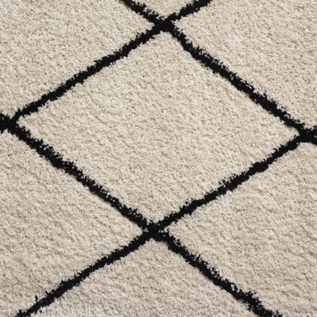 Het Cavallino vloerkleed wit/zwart ruit 35 mm XL 200x290 cm is een warm, extra groot hoogpolig vloerkleed dat is voorzien van een fraai motief en een satijnen look. Het ruitpatroon van het karpet zorgt voor een eigentijdse en trendy uitstraling en maakt je kamer op een fraaie wijze helemaal af.