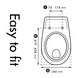 Door de verstelbaarheid in de scharnieren en de ovale vorm past de bril op de meeste gangbare toiletpotten, toch raden we je aan de lijntekening goed te bekijken zodat hij netjes past op jouw pot. Tenslotte monteer je de bril met het doordachte 'Fastfix' bevestigingssysteem eenvoudig vanaf de onderkant.