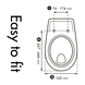 Door de verstelbaarheid in de scharnieren en de ovale vorm past de bril op de meeste gangbare toiletpotten, toch raden we je aan de lijntekening goed te bekijken zodat hij netjes past op jouw pot. Tenslotte monteer je de bril met het doordachte 'Fastfix' bevestigingssysteem eenvoudig vanaf de onderkant.