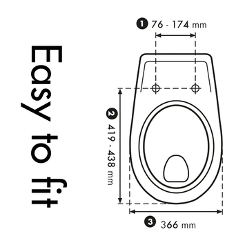 Door de verstelbaarheid in de scharnieren en de ovale vorm past de bril op de meeste gangbare toiletpotten, toch raden we je aan de lijntekening goed te bekijken zodat hij netjes past op jouw pot. Tenslotte monteer je de bril met het doordachte 'Fastfix' bevestigingssysteem eenvoudig vanaf de onderkant.