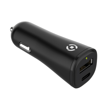 De autolader met twee output poorten (een USB-A en een USB-C) is ontworpen om