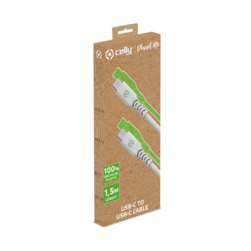 Celly Planet USB-C > USB-C 1,5 meter milieuvriendelijke oplaadkabel van 100% gerecycled plastic. Op zoek naar een manier om je favoriete elektronische apparaten met een USB-C aansluiting op een milieuvriendelijke manier op te laden?  De Planet oplaadkabel van Celly is de perfecte keuze. Deze kabel is volledig gemaakt van gerecycled plastic van hoge kwaliteit, zodat je je apparaten van stroom kunt voorzien terwijl je het milieu helpt beschermen. De oplaadkabel is een stap voorwaarts in het verminderen van plastic afval. Het gerecyclede plastic dat voor de kabel is gebruikt, is zeer resistent, wat zorgt voor een lange levensduur en een stabiele verbinding tijdens het opladen. De kabel is uitgerust met alle beveiligingen en certificeringen die nodig zijn om de veiligheid van je apparaat tijdens het opladen te garanderen.  Waarom kiezen voor de Celly Planet USB-C > USB-C? * Milieuvriendelijk en duurzaam: De oplaadkabel is een stap voorwaarts in het verminderen van plastic afval. Hij is gemaakt van gerecycled plastic van hoge kwaliteit, waardoor er minder nieuw plastic nodig is. * Functioneel ontwerp: De kabel is flexibel en praktisch ontworpen, zodat je hem gemakkelijk kunt aansluiten en de kabel netjes kunt beheren. De royale lengte geeft je flexibiliteit in gebruik. * Geïntegreerde bescherming: De kabel is uitgerust met alle beveiligingen en certificeringen die nodig zijn om de veiligheid van je apparaat tijdens het opladen te garanderen. * Draag bij aan duurzaamheid: Door voor onze milieuvriendelijke oplaadkabel te kiezen, draag je actief bij aan het verminderen van vervuilend plastic en ondersteun je het milieu.