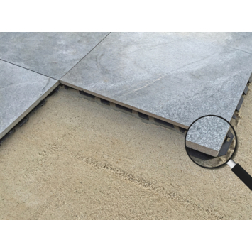 Ceramidrain is dé revolutie op het gebied van keramische terrastegels. Het product heeft namelijk alles in zich! Het combineert de positieve eigenschappen van keramische tegels met het verwerkingsgemak van een betontegel. Daarnaast kan het product regenwater onder je terras bufferen en geeft het langzaam weer af aan de grond (draineren). De bovenlaag van de Ceramidrain bestaat uit een keramische tegel van 16 millimeter dik. Keramische tegels zijn duurzaam en niet of nauwelijks aan verkleuring onderhevig. Bovendien zijn ze slijtvast en niet gevoelig voor krassen. De kunststof onderlaag heeft een open structuur en een wateropslagcapaciteit van maar liefst 22 liter per m². Regenwater wordt in deze onderlaag opgevangen en kan vervolgens langzaam worden afgegeven aan de grond. De twee lagen van de Ceramidrain zitten aan elkaar vast door een ijzersterke, gepatenteerde spreidplugverbinding. De lagen kunnen niet loskomen van elkaar, ook niet met vorst. Dankzij de speciale Plug- & layverbinding schuif je de tegels makelijk in elkaar en is het leggen van de Ceramidrain zeer eenvoudig, mede doordat de tegels met 17 kilogram per stuk licht in gewicht zijn. Ceramidrain-tegels kun je gewoon verwerken in een drainerend (eventueel stabiliserend) zandbed. Ze hebben een afstandhouder van 3 mm die zorgt voor een optimale afvoer van het water. De tegels hoeven niet gevoegd te worden, dit heeft een gunstig kostenaspect. Keramische tegels bevatten verschillende prints. Door deze variatie in nuancering en tekening, ontstaat een mooi, natuurlijk beeld. Zo is iedere vierkante meter bestrating in je tuin uniek. In de specificaties van deze keramische tegel, lees je hoeveel verschillende prints dit product heeft. Waar mogelijk laten we bij de afbeeldingen van de keramische tegels ook de verschillende prints zien, voor een zo compleet mogelijk beeld.