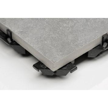Ceramidrain is dé revolutie op het gebied van keramische terrastegels. Het product heeft namelijk alles in zich! Het combineert de positieve eigenschappen van keramische tegels met het verwerkingsgemak van een betontegel. Daarnaast kan het product regenwater onder je terras bufferen en geeft het langzaam weer af aan de grond (draineren). De bovenlaag van de Ceramidrain bestaat uit een keramische tegel van 16 millimeter dik. Keramische tegels zijn duurzaam en niet of nauwelijks aan verkleuring onderhevig. Bovendien zijn ze slijtvast en niet gevoelig voor krassen. De kunststof onderlaag heeft een open structuur en een wateropslagcapaciteit van maar liefst 22 liter per m². Regenwater wordt in deze onderlaag opgevangen en kan vervolgens langzaam worden afgegeven aan de grond. De twee lagen van de Ceramidrain zitten aan elkaar vast door een ijzersterke, gepatenteerde spreidplugverbinding. De lagen kunnen niet loskomen van elkaar, ook niet met vorst. Dankzij de speciale Plug- & layverbinding schuif je de tegels makelijk in elkaar en is het leggen van de Ceramidrain zeer eenvoudig, mede doordat de tegels met 17 kilogram per stuk licht in gewicht zijn. Ceramidrain-tegels kun je gewoon verwerken in een drainerend (eventueel stabiliserend) zandbed. Ze hebben een afstandhouder van 3 mm die zorgt voor een optimale afvoer van het water. De tegels hoeven niet gevoegd te worden, dit heeft een gunstig kostenaspect. Keramische tegels bevatten verschillende prints. Door deze variatie in nuancering en tekening, ontstaat een mooi, natuurlijk beeld. Zo is iedere vierkante meter bestrating in je tuin uniek.