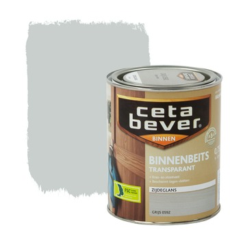 CetaBever binnenbeits transparant grijs zijdeglans 750 ml is een zijdeglans, watergedragen binnenbeits voor al uw houtwerk binnenshuis. CetaBever binnenbeits beschermt hout tegen vlekken, vuil en krassen waardoor het langer mooi blijft. U kunt het gebruiken op kaal of eerder transparant gebeitst hout zoals schroten, deuren, lambriseringen en meubels. De beits is sneldrogend en geurarm. Het geeft hout een transparante kleur waarbij het tegelijkertijd de houtnerf accentueert. De inhoudsmaat is 750 ml.