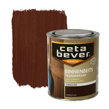 CetaBever binnenbeits transparant kersen zijdeglans 750 ml is een zijdeglans, watergedragen binnenbeits voor al uw houtwerk binnenshuis. CetaBever binnenbeits beschermt hout tegen vlekken, vuil en krassen waardoor het langer mooi blijft. U kunt het gebruiken op kaal of eerder transparant gebeitst hout zoals schroten, deuren, lambriseringen en meubels. De beits is sneldrogend en geurarm. Het geeft hout een transparante kleur waarbij het tegelijkertijd de houtnerf accentueert. De inhoudsmaat is 750 ml.