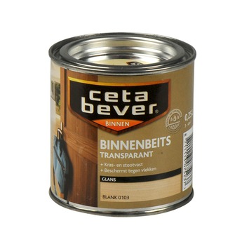 CetaBever binnenbeits transparant kleurloos zijdeglans 250 ml is een glanzende, watergedragen binnenbeits voor al uw houtwerk binnenshuis. CetaBever binnenbeits beschermt hout tegen vlekken, vuil en krassen waardoor het langer mooi blijft. U kunt het gebruiken op kaal of eerder transparant gebeitst hout zoals schroten, deuren, lambriseringen en meubels. De beits is sneldrogend en geurarm. Het geeft hout een transparante kleur waarbij het tegelijkertijd de houtnerf accentueert. De inhoudsmaat is 250 ml.