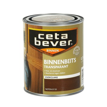 CetaBever binnenbeits transparant noten zijdeglans 750 ml is een zijdeglans, watergedragen binnenbeits voor al uw houtwerk binnenshuis. CetaBever binnenbeits beschermt hout tegen vlekken, vuil en krassen waardoor het langer mooi blijft. U kunt het gebruiken op kaal of eerder transparant gebeitst hout zoals schroten, deuren, lambriseringen en meubels. De beits is sneldrogend en geurarm. Het geeft hout een transparante kleur waarbij het tegelijkertijd de houtnerf accentueert. De inhoudsmaat is 750 ml.