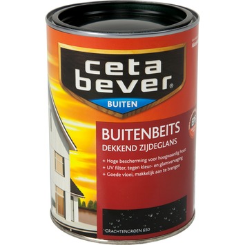 CetaBever buitenbeits dekkend grachtengroen zijdeglans 1,25 liter is een zijdeglans, dekkende beits voor al uw onbehandelde hout buiten. Het biedt de juiste balans tussen vochtregulering en UV-bescherming en is daarom uitstekend geschikt voor alle gevelbetimmeringen. CetaBever buitenbeits dekkend bevat een UV-filter waardoor het houtwerk beschermt wordt tegen UV-straling en daardoor langer mooi blijft. Het is geschikt om met een kwast of roller aan te brengen op grote houtoppervlakken zoals gevelbetimmeringen, tuinhuizen en woonboten. Door de uitstekende hechting en hoge laagdikte hoeft u geen grondverf te gebruiken. De inhoudsmaat is 1,25 liter.