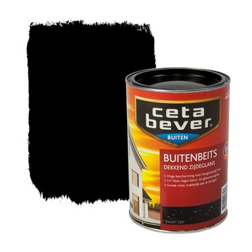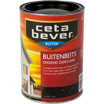 CetaBever buitenbeits dekkend zwart zijdeglans 1,25 liter is een zijdeglans, dekkende beits voor al uw onbehandelde hout buiten. Het biedt de juiste balans tussen vochtregulering en UV-bescherming en is daarom uitstekend geschikt voor alle gevelbetimmeringen. CetaBever buitenbeits dekkend bevat een UV-filter waardoor het houtwerk beschermt wordt tegen UV-straling en daardoor langer mooi blijft. Het is geschikt om met een kwast of roller aan te brengen op grote houtoppervlakken zoals gevelbetimmeringen, tuinhuizen en woonboten. Door de uitstekende hechting en hoge laagdikte hoeft u geen grondverf te gebruiken. De inhoudsmaat is 1,25 liter.