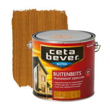 CetaBever buitenbeits transparant licht eiken zijdeglans 2,5 liter is een zijdeglans, transparante beits voor al uw onbehandelde hout buiten. Het biedt de juiste balans tussen vochtregulering en UV-bescherming en is daarom uitstekend geschikt voor alle gevelbetimmeringen. CetaBever buitenbeits transparant bevat een UV-filter waardoor het houtwerk beschermt wordt tegen UV-straling en daardoor langer mooi blijft. Het is geschikt om met een kwast of roller aan te brengen op grote houtoppervlakken zoals gevelbetimmeringen, tuinhuizen en woonboten. De inhoudsmaat is 2,5 liter.