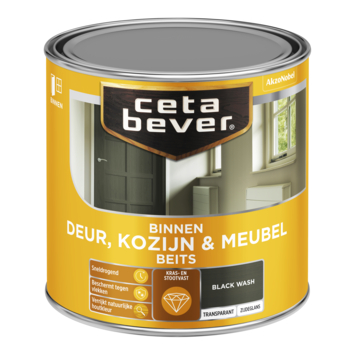 CetaBever Deur, Kozijn & Meubelbeits zijdeglans transparant black wash 250 ml is een watergedragen binnenbeits die een natuurlijke uitstraling aan je hout geeft. Het dringt diep in het hout door, maakt het kras- en stootbestendig en biedt bescherming tegen vlekken. Dankzij de zijdeglans afwerking komt de houtnerf prachtig naar voren en krijgt het hout een mooie, transparante kleur. De beits droogt snel, zodat je snel verder kunt met je klus. Beschikbaar in verschillende kleuren.