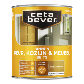 CetaBever Deur, Kozijn & Meubelbeits zijdeglans transparant donker eiken 750 ml is een watergedragen binnenbeits die een natuurlijke uitstraling aan je hout geeft. Het dringt diep in het hout door, maakt het kras- en stootbestendig en biedt bescherming tegen vlekken. Dankzij de zijdeglans afwerking komt de houtnerf prachtig naar voren en krijgt het hout een mooie, transparante kleur. De beits droogt snel, zodat je snel verder kunt met je klus. Beschikbaar in verschillende kleuren.