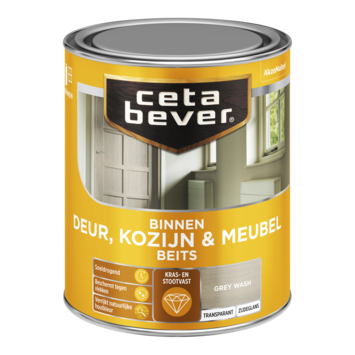 CetaBever Deur, Kozijn & Meubelbeits zijdeglans transparant grey wash 750 ml is een watergedragen binnenbeits die een natuurlijke uitstraling aan je hout geeft. Het dringt diep in het hout door, maakt het kras- en stootbestendig en biedt bescherming tegen vlekken. Dankzij de zijdeglans afwerking komt de houtnerf prachtig naar voren en krijgt het hout een mooie, transparante kleur. De beits droogt snel, zodat je snel verder kunt met je klus. Beschikbaar in verschillende kleuren.