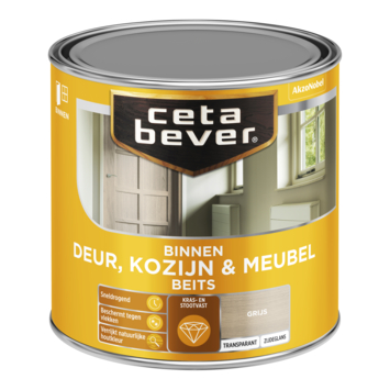 CetaBever Deur, Kozijn & Meubelbeits zijdeglans transparant grijs 250 ml is een watergedragen binnenbeits die een natuurlijke uitstraling aan je hout geeft. Het dringt diep in het hout door, maakt het kras- en stootbestendig en biedt bescherming tegen vlekken. Dankzij de zijdeglans afwerking komt de houtnerf prachtig naar voren en krijgt het hout een mooie, transparante kleur. De beits droogt snel, zodat je snel verder kunt met je klus. Beschikbaar in verschillende kleuren.