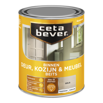 CetaBever Deur, Kozijn & Meubelbeits zijdeglans transparant grijs 750 ml is een watergedragen binnenbeits die een natuurlijke uitstraling aan je hout geeft. Het dringt diep in het hout door, maakt het kras- en stootbestendig en biedt bescherming tegen vlekken. Dankzij de zijdeglans afwerking komt de houtnerf prachtig naar voren en krijgt het hout een mooie, transparante kleur. De beits droogt snel, zodat je snel verder kunt met je klus. Beschikbaar in verschillende kleuren.