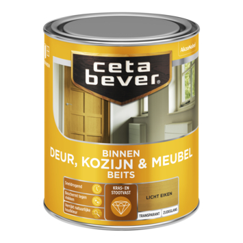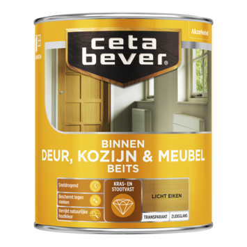 CetaBever Deur, Kozijn & Meubelbeits zijdeglans transparant licht eiken 750 ml is een watergedragen binnenbeits die een natuurlijke uitstraling aan je hout geeft. Het dringt diep in het hout door, maakt het kras- en stootbestendig en biedt bescherming tegen vlekken. Dankzij de zijdeglans afwerking komt de houtnerf prachtig naar voren en krijgt het hout een mooie, transparante kleur. De beits droogt snel, zodat je snel verder kunt met je klus. Beschikbaar in verschillende kleuren.