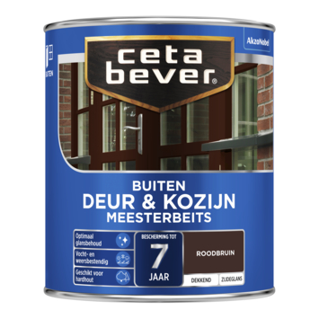 Met CetaBever Meesterbeits Deur & Kozijn zijdeglans roodbruin 750 ml geef je je hout een sterke, dekkende laag die bestand is tegen vocht en weersinvloeden. De oplosmiddelhoudende beits biedt tot 7 jaar bescherming en zorgt voor optimaal glansbehoud, zodat je deuren en kozijnen er langdurig goed uitzien. Je kunt de beits mengen in elke gewenste dekkende kleur, zodat je altijd de juiste uitstraling krijgt. De zijdeglans afwerking geeft je houtwerk een nette look en extra bescherming tegen wind en regen.