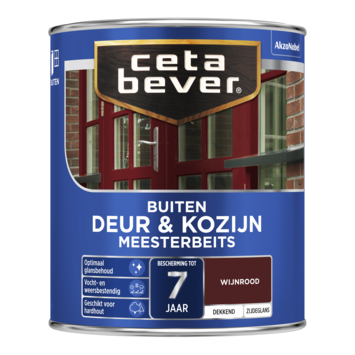 Met CetaBever Meesterbeits Deur & Kozijn zijdeglans dekkend wijnrood 750 ml geef je je hout een sterke, dekkende laag die bestand is tegen vocht en weersinvloeden. De oplosmiddelhoudende beits biedt tot 7 jaar bescherming en zorgt voor optimaal glansbehoud, zodat je deuren en kozijnen er langdurig goed uitzien. Je kunt de beits mengen in elke gewenste dekkende kleur, zodat je altijd de juiste uitstraling krijgt. De zijdeglans afwerking geeft je houtwerk een nette look en extra bescherming tegen wind en regen.