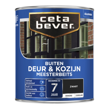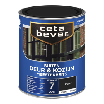 Met CetaBever Meesterbeits Deur & Kozijn zijdeglans dekkend zwart 750 ml geef je je hout een sterke, dekkende laag die bestand is tegen vocht en weersinvloeden. De oplosmiddelhoudende beits biedt tot 7 jaar bescherming en zorgt voor optimaal glansbehoud, zodat je deuren en kozijnen er langdurig goed uitzien. Je kunt de beits mengen in elke gewenste dekkende kleur, zodat je altijd de juiste uitstraling krijgt. De zijdeglans afwerking geeft je houtwerk een nette look en extra bescherming tegen wind en regen.
