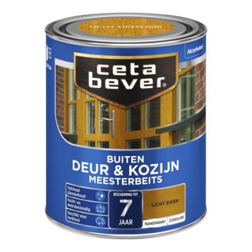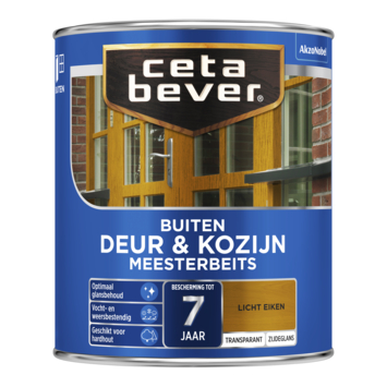 Met CetaBever Meesterbeits Deur & Kozijn zijdeglans transparant licht eiken 750 ml bescherm je deuren en kozijnen tot 7 jaar tegen vocht en weersinvloeden. De beits is speciaal ontwikkeld voor hardhout en biedt een transparante afwerking die de houtnerf goed zichtbaar houdt. Zo blijft de natuurlijke uitstraling van het hout behouden. Daarnaast zorgt het optimale glansbehoud ervoor dat je houtwerk er langdurig netjes uitziet. Verkrijgbaar in verschillende kleuren en in de glansgraden zijdeglans en glans. De exacte beschermingsduur hangt af van factoren zoals zonlicht, houtsoort en het aantal aangebrachte lagen.