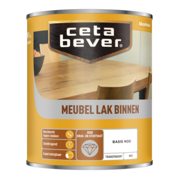CetaBever meubellak mat 750 ml is een watergedragen lak die je houten meubels beschermt en verzorgt. De lak is sneldrogend en laat de houtnerf mooi zichtbaar. Dankzij de kras- en stootvaste eigenschappen blijft het oppervlak langer mooi, terwijl het ook bescherming biedt tegen vlekken en vergeling. Zo blijft je hout er fris en verzorgd uitzien.