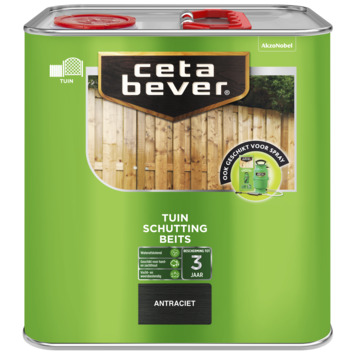 Wil je je schutting goed beschermen? CetaBever Schuttingbeits transparant antraciet 2,5 liter is een waterafstotende beits die hout beschermt tegen vocht en weersinvloeden. Deze beits is geschikt voor hard- en zachthout en kan tot 3 jaar bescherming bieden. De beits is verkrijgbaar in verschillende transparante kleuren, zodat je altijd de juiste keuze kunt maken voor jouw tuin. Dankzij de snelle droging kun je vlot doorwerken. Niet geschikt voor gebruik op gelakte oppervlakken. Hoe lang de bescherming precies meegaat, hangt af van de houtsoort, de kleur, zonlicht en het aantal aangebrachte lagen.
