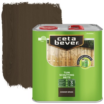 Wil je je schutting goed beschermen? CetaBever Schuttingbeits transparant donkerbruin 2,5 liter is een waterafstotende beits die hout beschermt tegen vocht en weersinvloeden. Deze beits is geschikt voor hard- en zachthout en kan tot 3 jaar bescherming bieden. De beits is verkrijgbaar in verschillende transparante kleuren, zodat je altijd de juiste keuze kunt maken voor jouw tuin. Dankzij de snelle droging kun je vlot doorwerken. Niet geschikt voor gebruik op gelakte oppervlakken. Hoe lang de bescherming precies meegaat, hangt af van de houtsoort, de kleur, zonlicht en het aantal aangebrachte lagen.