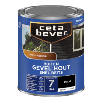 CetaBever Snelbeits Gevel hout dekkend zijdemat zwart 750 ml is een watergedragen buitenbeits, verkrijgbaar in diverse kleuren met een mooi zijdemat eindresultaat en te mengen in iedere gewenste kleur. Met dekkende Snelbeits kan je jouw hout binnen een dag langdurig beschermen tegen weersinvloeden.