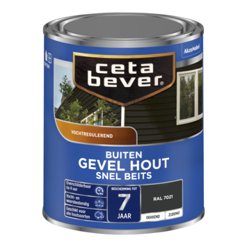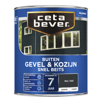 CetaBever Snelbeits Gevel & Kozijn zijdemat dekkend RAL 7021 zwartgrijs 750 ml is de ideale keuze voor het beschermen van buitenhout. Deze watergedragen beits is geschikt voor zowel kaal als eerder geverfd hout, en zorgt voor langdurige bescherming van je buitenhoutwerk. Het is met name geschikt voor zachthout ofwel niet-maatvast houtwerk, zoals gevelbetimmeringen en rabatdelen. De beits droogt snel, zodat je na vier uur al kunt overschilderen, en houdt je hout tot zeven jaar in goede staat. Je kunt de beits niet alleen in RAL 9010 verkrijgen, maar ook in elke gewenste dekkende kleur laten mengen. Deze beits is vocht- en weerbestendig, waardoor je buitenhout goed beschermd is tegen het wisselende buitenklimaat.